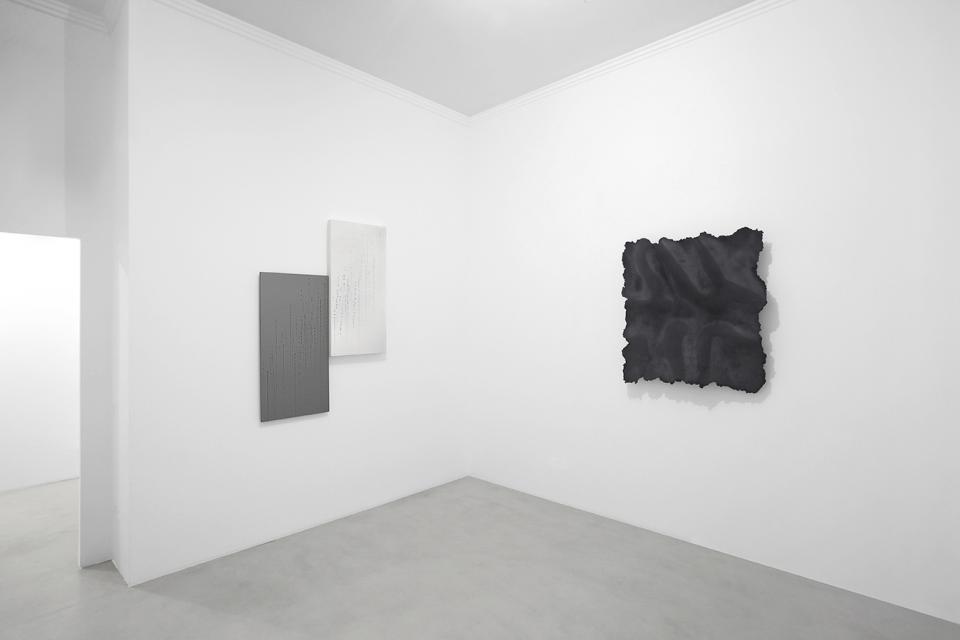 Ciascuno di essi, in modo differente, realizza immagini che possiamo definire spazi sensibili, con i quali il visitatore è chiamato a mettere in gioco la propria fisicità: Decrauzat nelle sue distorsioni percettive di permeabilità dell’astrazione, De Marchi nelle sue traiettorie di buchi che materializzano il vuoto, Martina Klein nelle sue articolazioni plastico-cromatiche sospese, Sassolino nelle sue paradossali tensioni di materia. Sono opere pensate come modulazioni sensibili dello spazio, ma non in una chiave puramente visuale: non esauriscono infatti il loro significato nell’essere osservate, ma richiedono un altro tipo di coinvolgimento. Il visitatore è chiamato a decifrare la loro presenza sensibile attraverso la propria, in un tempo di relazione e assimilazione: non limitandosi allo sguardo, ma percorrendo con il corpo e con la mente le vibrazioni e i respiri di queste immagini, la cui essenzialità complessa diviene luogo di accadimenti sensoriali, in tempo reale.