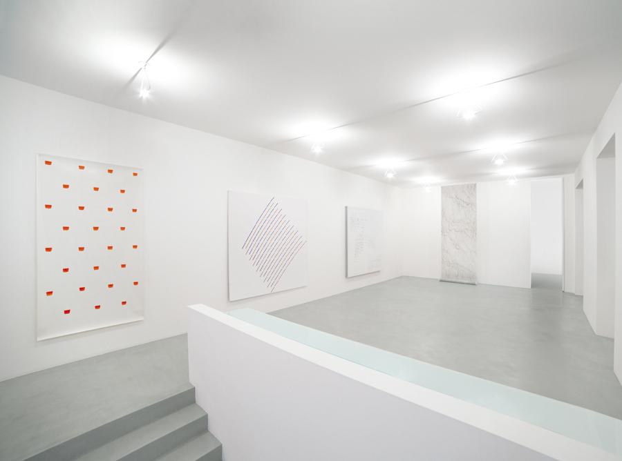 La prima tematica è quella del tempo, elemento specifico della musica, senza il quale l’opera musicale semplicemente non esiste, ed analogamente, anche in ambito visivo, dimensione del fare e dell’esistere, sfida perenne a una rappresentazione e spiegazione possibile. Niele Toroni esprime questa dimensione nella maniera più essenziale, lasciando impronte di pennello che scandiscono contemporaneamente il tempo del creare e quello dell’esserci. Anche Dadamaino ripete un unico gesto, un breve tratto, che nella sua infinita iterazione va a comporre linee che sono «fatti della vita», unione inscindibile di essere e tempo, Sein und Zeit. Nelle opere di Riccardo De Marchi, la ripetizione di un elemento costitutivo si configura esplicitamente come linguaggio, che si mostra, tuttavia, privo di un codice di decrittazione e perciò diviene pura presenza di segni nel tempo. François Morellet, poi, nella sua indagine delle strutture del reale, va a coinvolgere quel rapporto matematico senza il quale non si dà oscillazione né evento sonoro. Nell’opera di Gianni Colombo, il tempo diviene la condizione stessa dell’esistenza, esattamente come accade per l’opera musicale: le sue strutture in movimento indagano il farsi e disfarsi delle forme, la loro modificazione, la loro inafferrabilità.